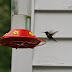 every so often, one iridescent green bird comes soaring to the feeder, setting its long thin beak into the sugary water. Sometimes, one hummingbird will dive bomb another, trying to lay claim to the feeder.